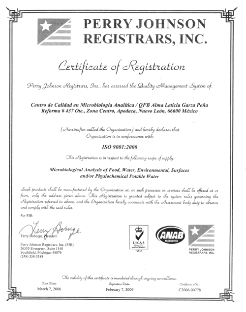 Emitir informes confiables, a través de personal capacitado, cumpliendo con los tiempos de entrega establecidos, procurando el más estricto control de confidencialidad e imparcialidad en los resultados obtenidos, manteniendo además el compromiso de una mejora continua en los procesos del sistema de gestión de la calidad basado en la norma NMX-EC-17025-IMNC-2018 (ISO/IEC-17025:2017) y el logro de los objetivos para la satisfacción total de nuestros clientes.